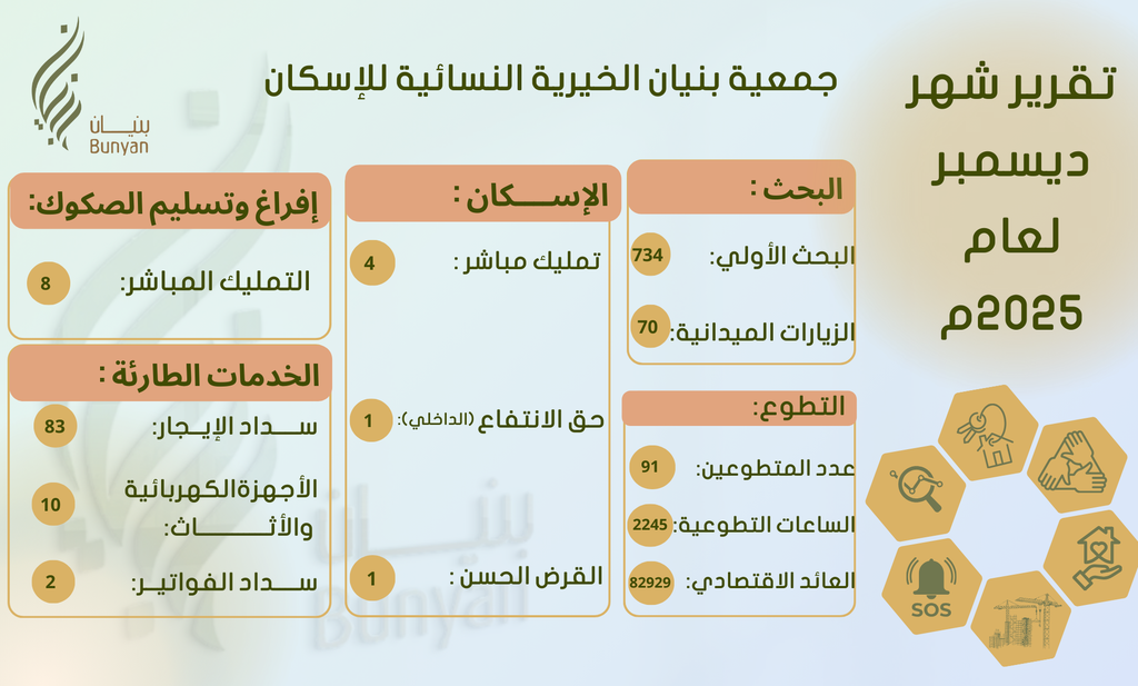 ويأتي هذا تكريما و تقديراً لإسهامات جمعية بنيان الخيرية للإسكان في تحسين ظروف السكن وتلبيتها لاحتياجات الأسر في المنطقة؛ وذلك في إطـار سعيهـا لتحقيق مستهدفات رؤية السعودية2030.